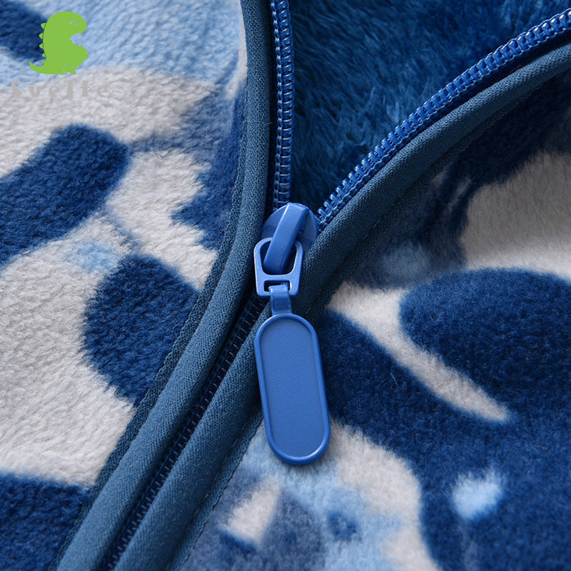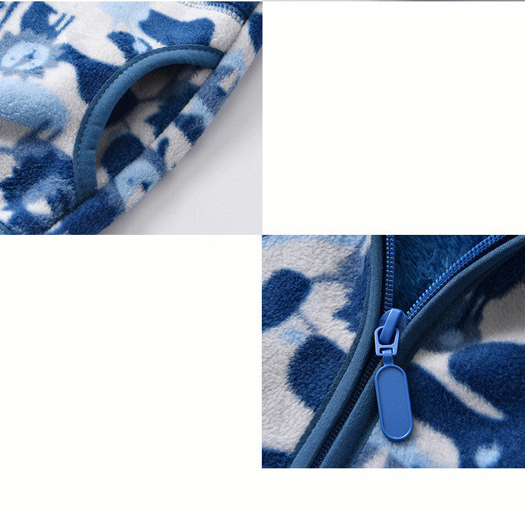 Cartoon Jacket Plus Velvet Stand-up Collar Trendy Children