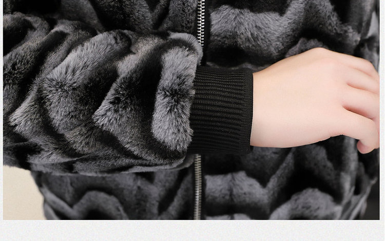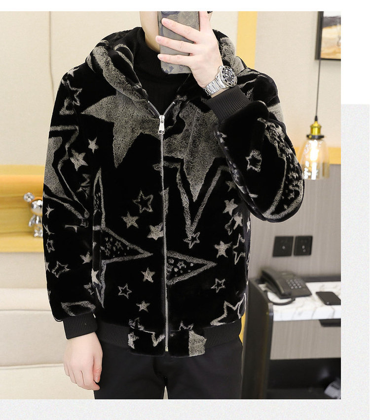 The jacket is crafted from high-quality artificial fur with a wrinkle-resistant finish, ensuring a neat appearance and easy maintenance. Thoughtful side-seam pockets add functionality without compromising the clean design. Available in distinctive patterns including 999 Five-pointed Star, 999 Wavy Gray, and 999 Wavy Coffee, it offers versatile styling options to suit different preferences.