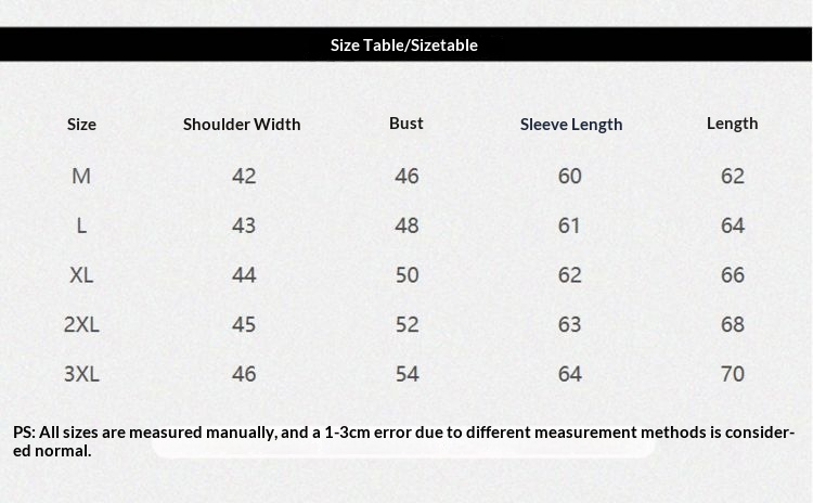 With a mid-length cut (65–80 cm) and a full size range from M to 3XL, this piece balances warmth, comfort, and modern street style—making it a reliable choice for daily wear during the autumn season.