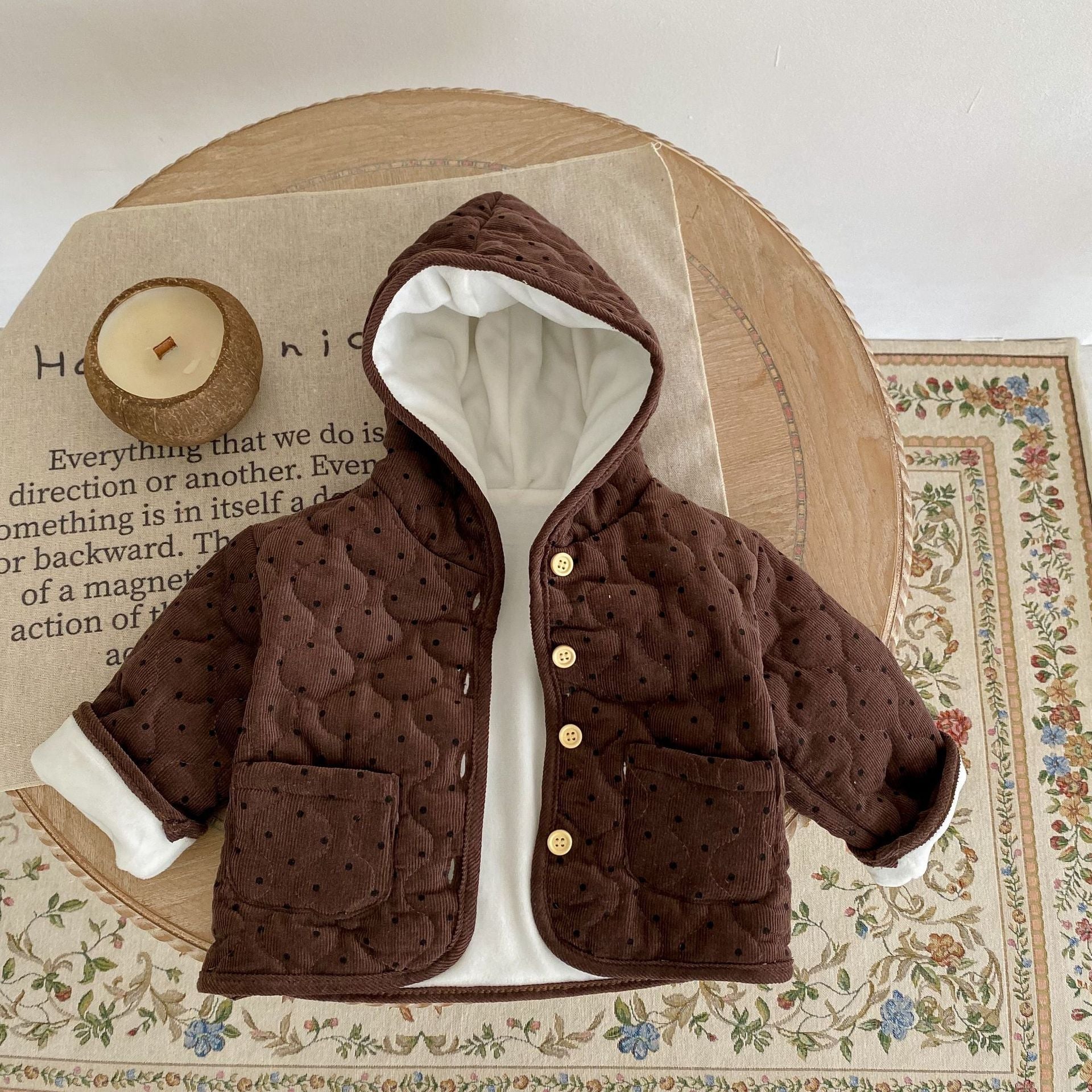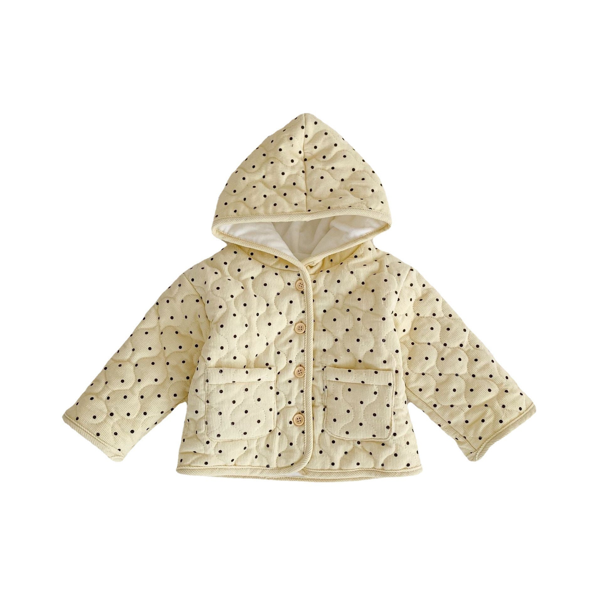 New Baby Cotton Thickened Long Sleeve Dotted Cardigan Hooded Coat